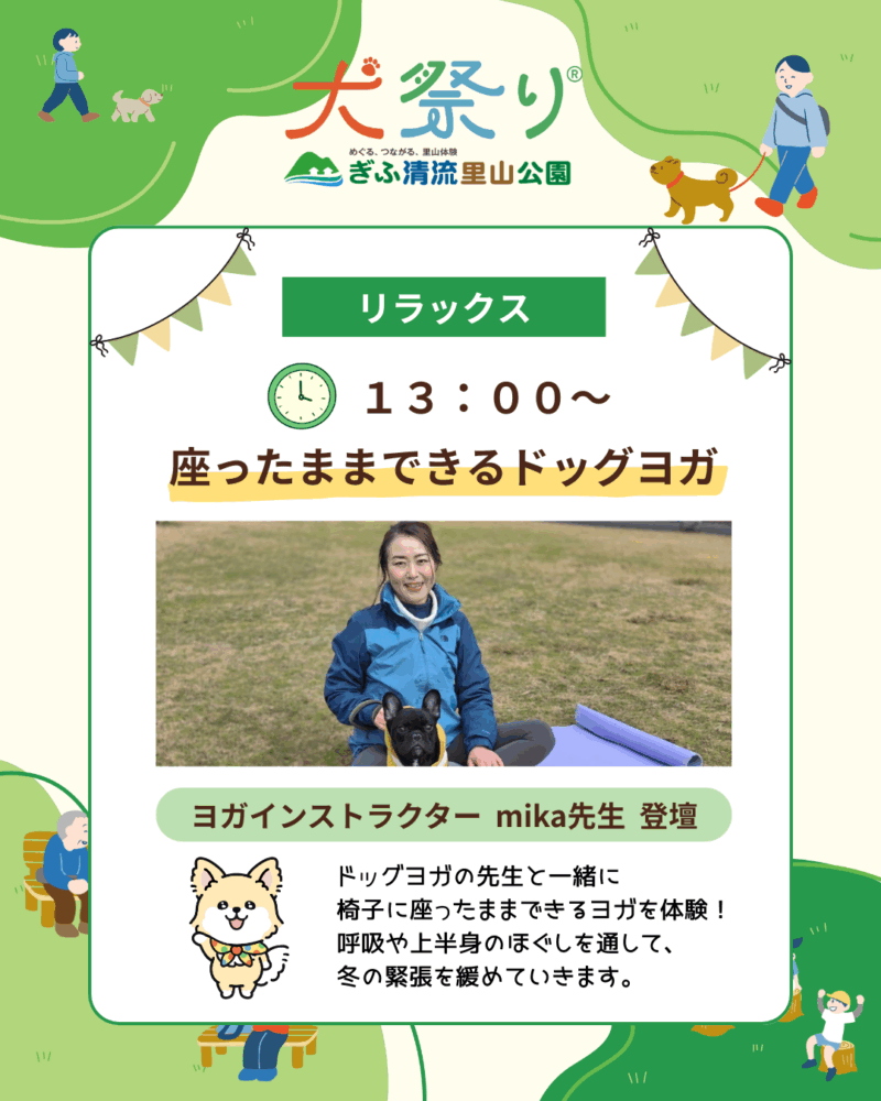 ドッグヨガの先生と一緒に、椅子に座ったままできるヨガを体験!